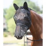 Ščiti nosnice pred muhami. Narejen iz poliestrske mreže, s samoprijemanjem in 2 vrvema za pritrditev na nosni trak ali naglavni ovratnik.