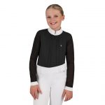 Tekmovalna majica Sennah z dolgimi rokavi iz zimske kolekcije ima raztegljive mrežaste rokave, okrašene z okrasnimi kamni.